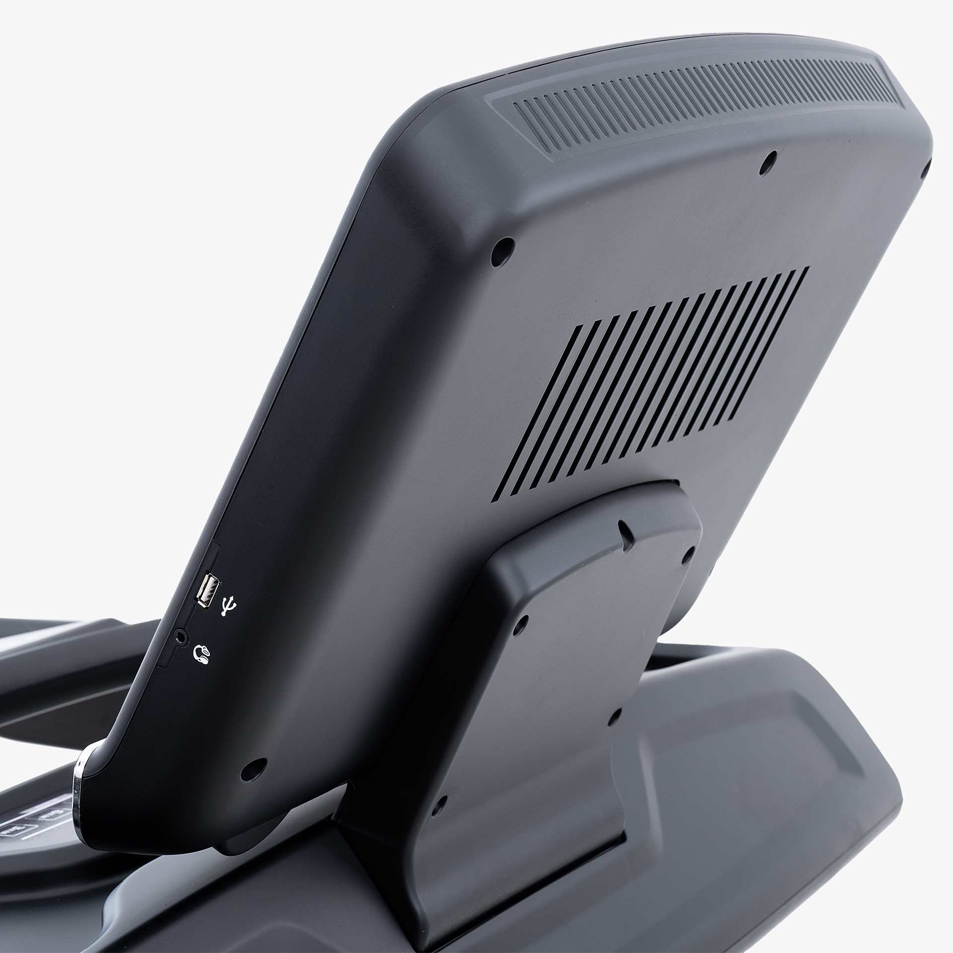 La console est équipée de deux enceintes audio HI-FI, de deux compartiments porte-bouteille/objet, d’une entrée audio USB, d’une entrée jack audio, d’une sortie USB pour recharger vos appareils pendant l’entraînement. Il est possible de connecter quelques Apps motivantes et ludiques pour rendre les entraînements moins monotones, comme : Zwift, Kinomap (abonnements non inclus).